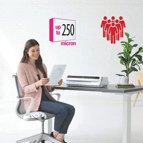 Wichtig: ClearPath-Technologie für staufreies Laminieren (garantiert mit Fellowes-Laminierfolien) Für alle Folien bis Größe A3 und 250 Mikron (2 x 250)