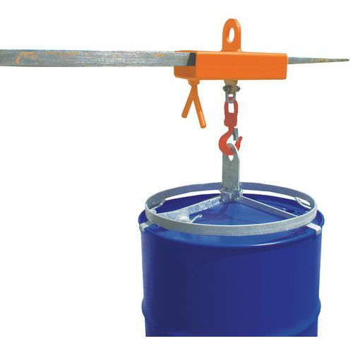 - Zum Einhaken einer Fassklammer oder jedes anderen Fasstransportmittels an der Gabel eines Hebezeugs.
