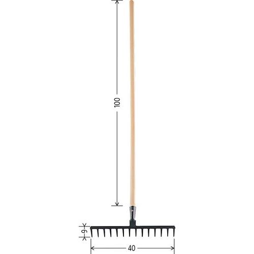 | Produktname | Laubrechen, Breite: 40 cm, Handgrifflänge: 100 cm, Anzahl Zähne: 14, Gewicht: 1.3 kg |