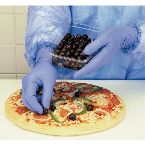 Die dunkelblauen Nitrilhandschuhe VersaTouch® 92-465 sind lebensmittelkonform und eignen sich für eine Vielzahl von Aufgaben in der Lebensmittelverarbeitung