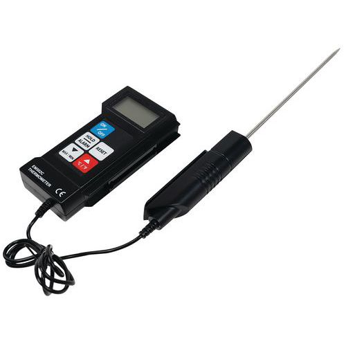 | Produktname | Lebensmittelthermometer, Taschenformat, mit Sonde - Manutan Expert, Max. gemessene Temperatur: 300 °C |