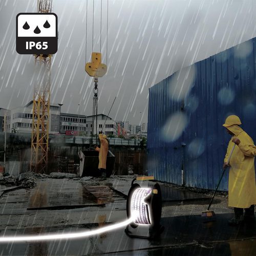 - Sobald es ausgerollt ist, beginnt es zu leuchten: 19.230 oder 32.000 Lumen Licht (185 W oder 305 W, je nach Ausführung) beleuchten Ihre Baustelle