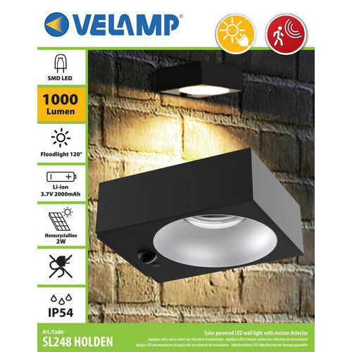 | Produktname | LED-Solarleuchte/Wandleuchte mit Bewegungssensor Holden - Velamp, Lichtstrom: 1000 lm |