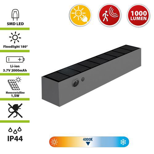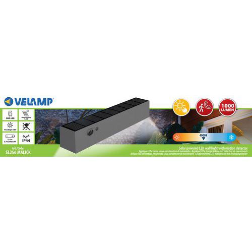 | Produktname | LED-Solarleuchte/Wandleuchte mit Bewegungssensor Malick - Velamp, Lichtstrom: 1000 lm |
