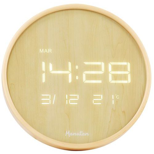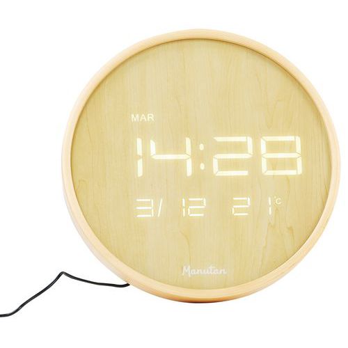 | Produktname | LED-Wanduhr, rund, Holz - Manutan Expert, Uhranzeige: Numerischer, Form: Rund, Farbe: Braun, Breite: 32 mm |