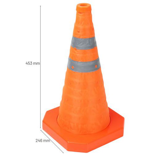 - Leitkegel aus Nylon, einklappbar mit reflektierenden Bändern.