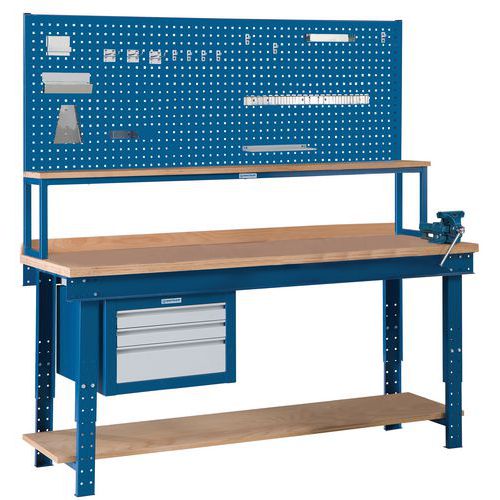 Lochplatte und Fachbodenträger für Werkbank, Breite: 2000 mm, Höhe: 700 mm, Farbe: Blau, RAL: 5009