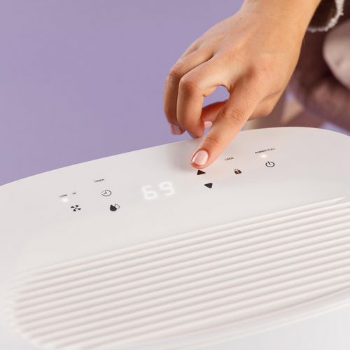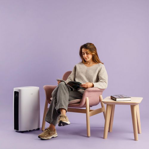 340 W Wahlschalter für die gewünschte Feuchtigkeit Sensor und Anzeige der Umgebungsfeuchtigkeit Automatische Enteisungssteuerung Tankinhalt von 4 L Anzeige für vollen Behälter Timer: 24 Stunden Luftdurchsatz von 180 m³/h Entfeuchtungskapazität von 22 L/24 h Abnehmbarer und abwaschbarer Filter Transportgriff Ideal für Räume von bis zu 45 m² Zwei einstellbare Geschwindigkeiten Leiser Betrieb bei 47 dB Umweltfreundliches Kühlmittel R290 Kontinuierliches Drainagesystem Vier Räder für einen einfachen Transport