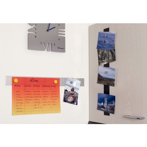Selbstklebendes Metallband zur Hervorhebung Ihrer Informationen Zur Befestigung von Dokumenten mit Magneten Kann von Wand zu Wand und an Ecken befestigt werden. Kann mit einer herkömmlichen Schere einfach auf die gewünschte Länge zugeschnitten werden. Selbstklebende Schaumstoffbeschichtung zum Ausgleichen von Wandunregelmäßigkeiten, hinterlässt Rückstände