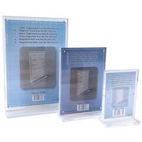 Foto- oder Posterrahmen mit Magnetverschluss in T-Form Dokument oder Foto wird einfach zwischen zwei magnetischen Plexiglas-Scheiben eingeschoben Verschlossen wird der Rahmen mit starken Magneten in den Ecken oder in der Mitte Stabiler Foto- oder Posterrahmen mit Halterung Hergestellt in der EU
