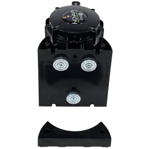 Halterung mit Kopf mit ein-/ausrollbarem Gurt.