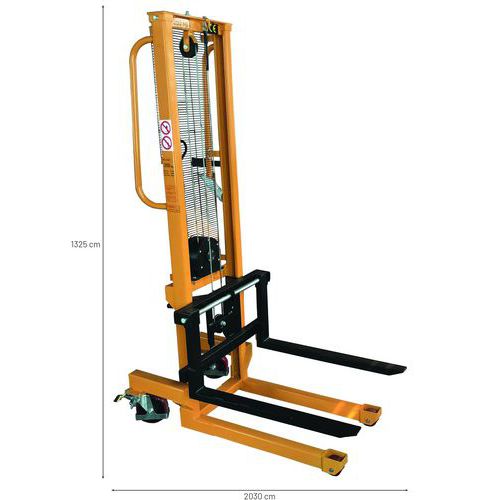 | Produktname | Manueller Gabelstapler - Tragkraft 250 kg, Max. Belastung: 250 kg, Max. Hubhöhe: 1560 mm |