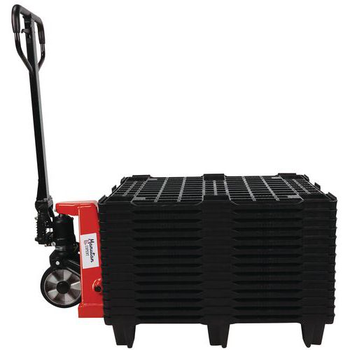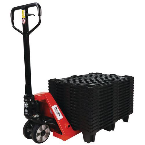 | Produktname | Handhubwagen 2 t, 800 mm + 15 Paletten 800x600 mm - Manutan Expert, Max. Belastung: 2000 kg |