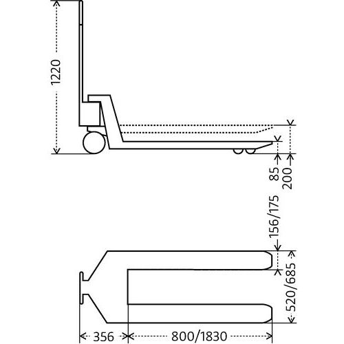 | Produktname | Manueller Hubwagen - Gabellänge 1220 mm - Tragkraft 3000 kg, Max. Belastung: 3000 kg, Länge Gabel: 1220 mm |