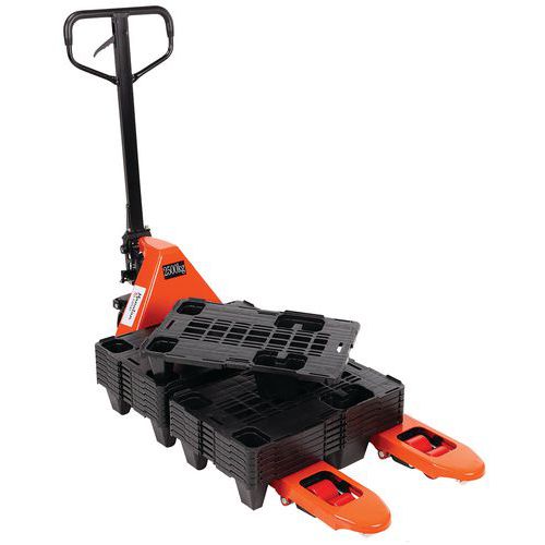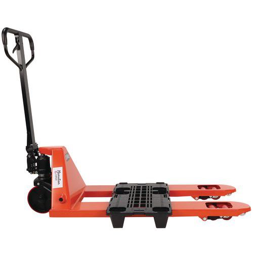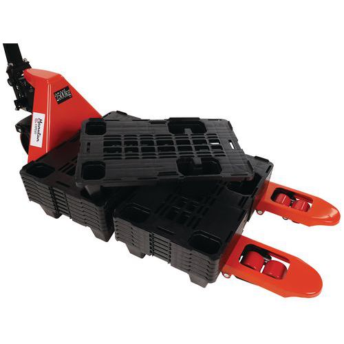 | Produktname | Handhubwagen 2,5 t, 1150 mm + 15 Paletten 600x400 mm - Manutan Expert, Max. Belastung: 2500 kg |