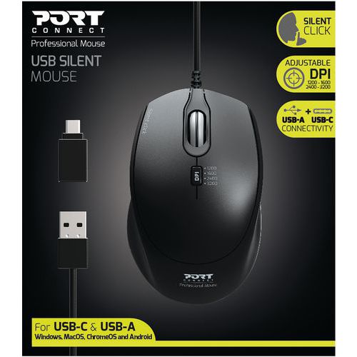 | Produktname | Maus Pro, leise, kabelgebunden, schwarz - Port Connect, Typ Sensor: Optische, Typ Scrollrads: Scrollrad |