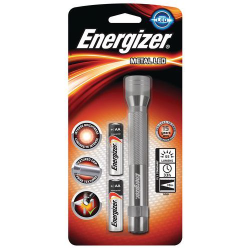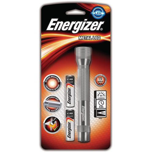 | Produktname | Metall-LED-Taschenlampe 2 AA - 55 lm - Energizer, Lichtstrom: 60 lm, Batteriezeit: 41 h, Spannweite: 38 m |