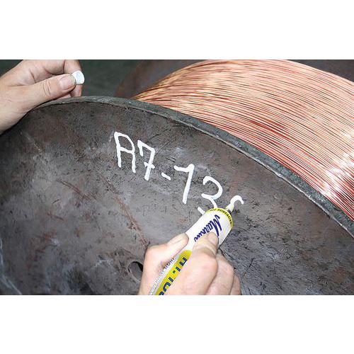 - Solide Stahlkugelspitze für die Kennzeichnung auf glatten oder rauen Oberflächen mit permanenter Farbe.