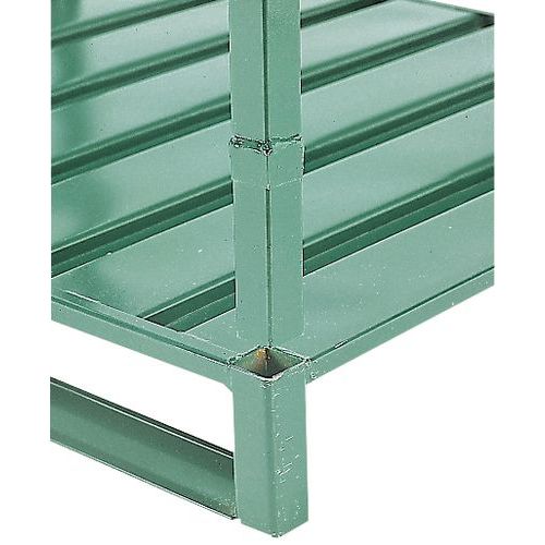 Mit Schienen und Stapelführungen an den Eckprofilen.