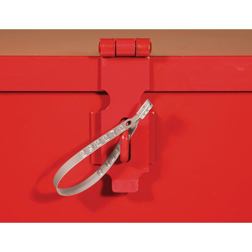 | Produktname | Metallplombe, Farbe: Grau, Gesamtlänge: 195 mm, Nutzbare Länge: 160 mm, Durchgang Breite: 10 mm |