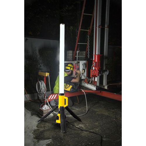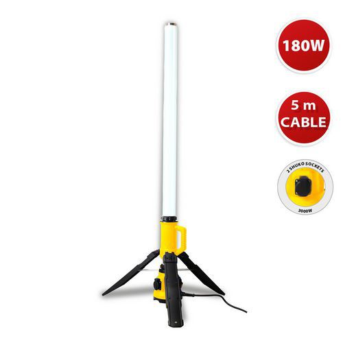 Große LED-Leuchte Excalibur von Stak: 156 cm hoch, 85 cm Stativ, hervorragend für Baustellen als Hauptlichtquelle zur Beleuchtung eines Raums oder eines Außenbereichs Leistungsstark: Leuchte Excalibur von Stak mit hocheffizienter SMD-LED 2835, wärmeableitend, bietet Licht mit 21.000 Lumen (180 W) in einem 360°-Abstrahlwinkel Vielseitig einsetzbar: mit zwei Schuko-Steckern (3000 W) Daran lässt sich ein Werkzeug anschließen oder eine weitere Leuchte in Reihe schalten, um die Baustelle mit mehreren Leuchten gut auszuleuchten Widerstandsfähig: Konstruktion aus Polykarbonat, Stoßfestigkeitsgrad IK10 (fast unzerbrechlich), Schutzart IP54 (spritzwasserbeständig), problemlos auf Baustellen und Transportwagen einsetzbar, kaum anfällig für Stürze Material: Polykarbonat und Aluminium Mit 5 m langem Kabel H07RN-F 3 x 1,5 mm2 samt 2 Schuko-Steckern CEE 7/7