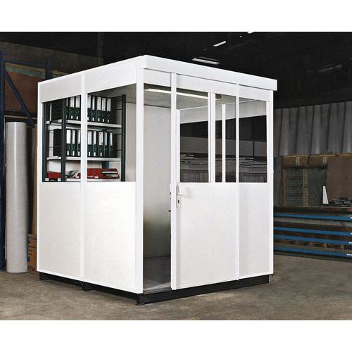 Einfacher Aufbau: Beweglicher Zusatz-Arbeitsplatz. Schnelle Beförderung dank der Bodenplatte, die eine Palettierung erlaubt. Die Schwingtür öffnet sich nur nach außen.