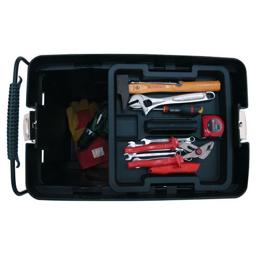 | Produktname | Mobile Werkstatt, Gesamtinhalt: 53 L, Werkstoff: Polypropylen, Gesamthöhe: 430 mm, Gesamtbreite: 375 mm |