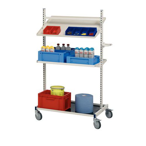 Praktischer Fachboden für Ihre Euronorm-Behälter Fachboden höhenverstellbar für mehr Flexibilität Fachboden lässt sich in drei Positionen (0°, 10° oder 20°) kippen Fachboden mit Rand an allen Seiten Rollen mit Gummibereifung zum einfachen Manövrieren. Max. Belastung (kg) : 150 Kundengarantie : 3 Jahre