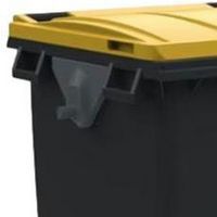 Dank der Deichsel können bis zu 5 Container angehängt werden. Solider und witterungsbeständiger Container aus Polyethylen hoher Dichte. Gut beweglich dank 4 Schwenkrollen und Doppelgriff vorne. Für eine sichere Verwendung stellt sich der Deckel nach dem Öffnen auf halber Höhe fest. Deckel in verschiedenen Farben für eine einfache und schnelle Abfalltrennung.