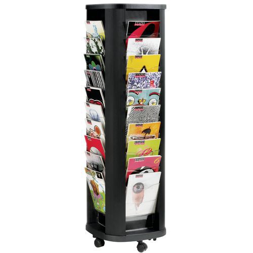 | Produktname | Mobiler Drehständer, Anzahl Fachböden: 40, Für Format: A4, Farbe: Schwarz, Typ: 40 x A4, Gesamtbreite: 44 cm |