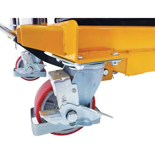 Manueller Hubtisch mit Doppelschere Ergonomischer Tisch zum Heben, Senken und Transportieren von Lasten bis zu 350 kg Ideal für den Transport und die Nivellierung schwerer Lasten Leicht, kompakt und einfach zu transportieren, relativ wartungsarm Ein unverzichtbares Werkzeug zur Optimierung der Produktivität bei gleichzeitiger Wahrung der Gesundheit der Teams Mit 2 Bockrollen und 2 Lenkrollen aus Polyurethan