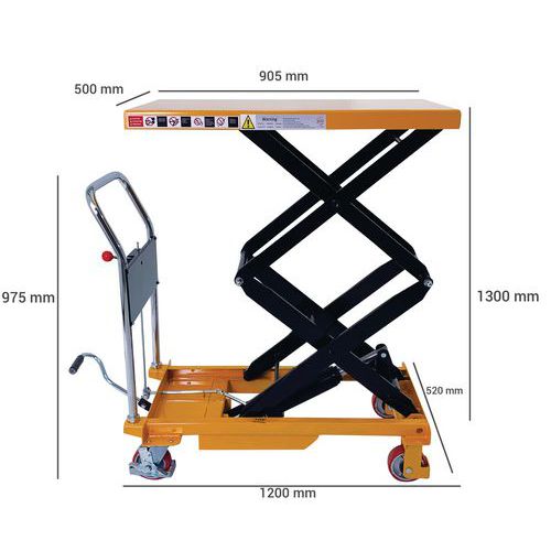 Mobiler Hubtisch - Tragkraft 350 kg - Manutan Expert, Max. Belastung: 350 kg, Max. Höhe Plattform: 1300 mm