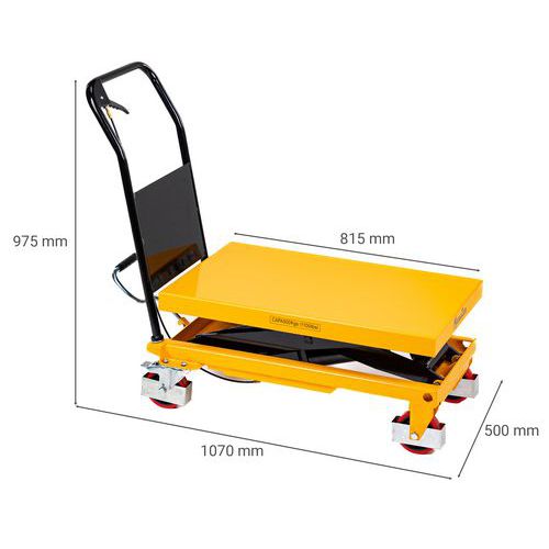 - Maximale Hubhöhe von 895 mm mit einer Arbeitsplatte von 815 x 500 mm