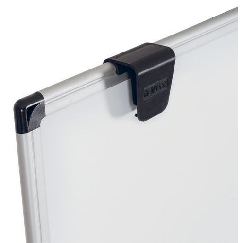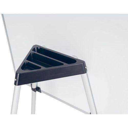 Mit versetzbaren Haken für Flipchart-Papierblöcke und Kunststoffablage für Zubehörteile an der Rückseite