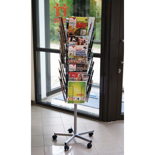 | Produktname | Mobiler Prospektständer 32 Fächer, Anzahl Fachböden: 32, Für Format: A4, Farbe: Grau, Typ: Prospektständer |