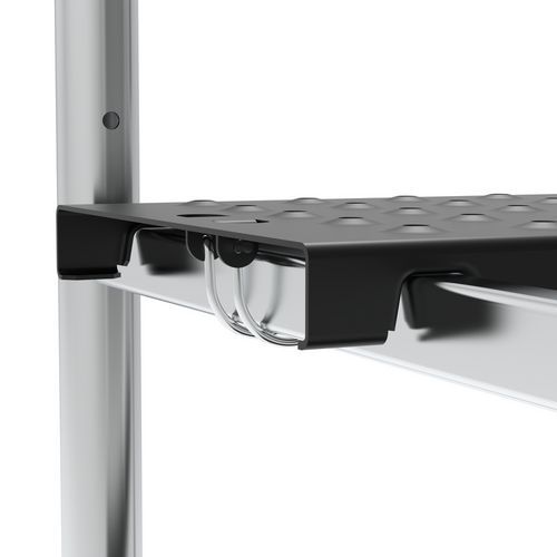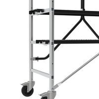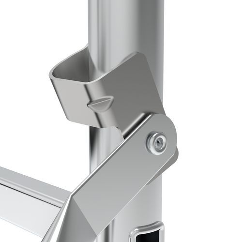 Kompaktes und praktisches Aluminiumgerüst, besonders geeignet für den Einsatz im Innenbereich Die 2 Platten können je nach Arbeitskonfiguration versetzt oder in einer Linie verwendet werden Einfache Montage ohne Werkzeug. Kompakt, misst nur 64 cm und passt durch Türen, ohne zusammengeklappt zu werden Modular: Platten in 3 Ebenen verstellbar Rutschfeste Platten Lenkrollen mit Feststeller, nicht kontaktfärbend Werkzeughalter inbegriffen Entspricht der Norm NF E 85-200