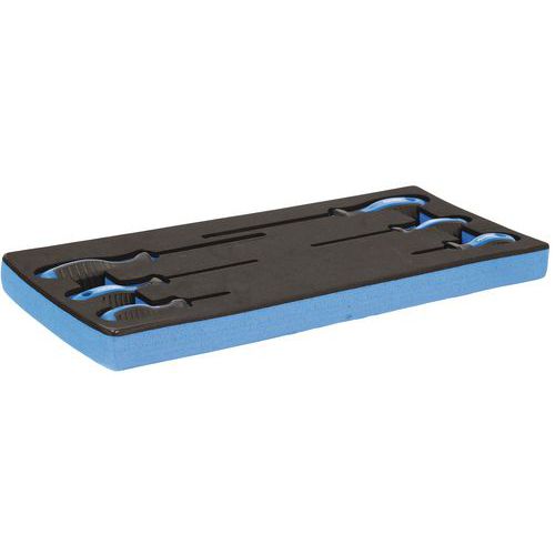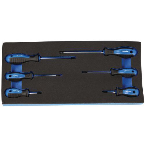 Schaumstoffmodul mit 6 Schraubendrehern: Schraubendreher, Kugelkopf: PH2 und PZ2 Schraubendreher 3, 4 und 5,5 mm Schraubendreher Philips PH0.