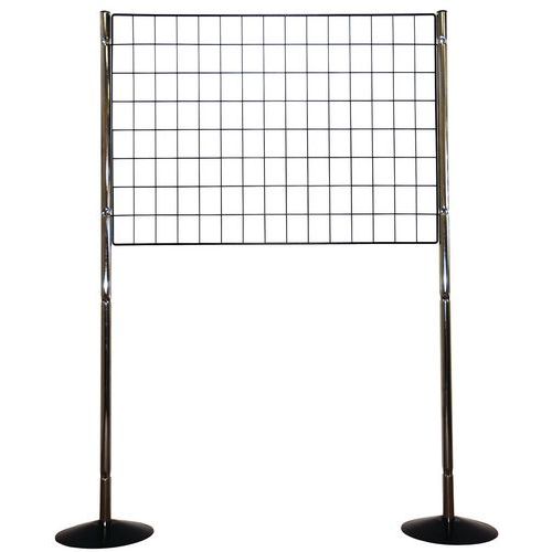 Maggiori informazioni: Griglia: realizzata in filo di acciaio da 4 mm, perimetro da 8 mm. Colore laccato epossidico nero (RAL 9005). 6 ganci saldati per la griglia 180 x 120 cm e 4 ganci per la dimensione 85 x 120 cm. Parete divisoria in sughero: pannello isolante da 10 mm e pannello in sughero bifacciale da 1 mm di spessore. Telaio in alluminio anodizzato e angoli in polistirolo iniettato e coperture angolari in poliammide. Parete laccata bianca: lastra in cartone alveolare da 10 mm e lamiera bifacciale laccata bianca da 0,4 mm. Struttura in alluminio anodizzato e angoli in zama e copriangoli in poliammide. Palo: acciaio cromato diametro 40 mm con 4 livelli di 4 tacche. Base laccata epossidica nera (RAL 9005) avvitata al palo.