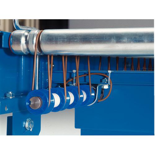 Akkubetriebener, motorisierter Förderer RCLA, Riemenantrieb und Rollen mit einer Länge von 400 mm. Modulare Anlage mit geraden Elementen und Kurvenelementen. Robustes Gestell des Förderers. Stoßfeste Pulverbeschichtung. Absolute Sicherheit der Lasten. Kundengarantie : 3 Jahre