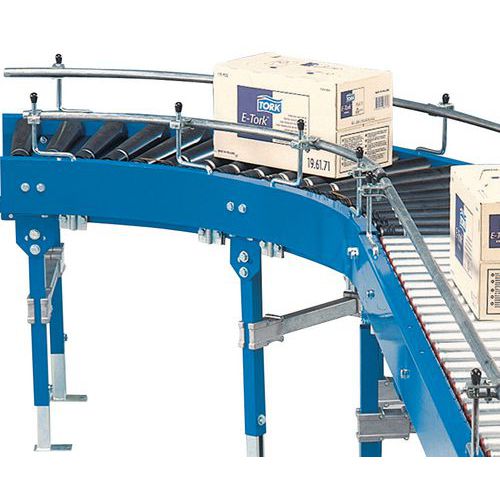Akkubetriebener, motorisierter Förderer RCLA, Riemenantrieb und Rollen mit einer Länge von 600 mm. Modulare Anlage mit geraden Elementen und Kurvenelementen. Robustes Gestell des Förderers. Stoßfeste Pulverbeschichtung. Absolute Sicherheit der Lasten. Kundengarantie : 3 Jahre