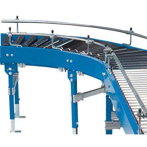 Akkubetriebener, motorisierter Förderer RCLA, Riemenantrieb und Rollen mit einer Länge von 600 mm. Modulare Anlage mit geraden Elementen und Kurvenelementen. Robustes Gestell des Förderers. Stoßfeste Pulverbeschichtung. Absolute Sicherheit der Lasten. Kundengarantie : 3 Jahre