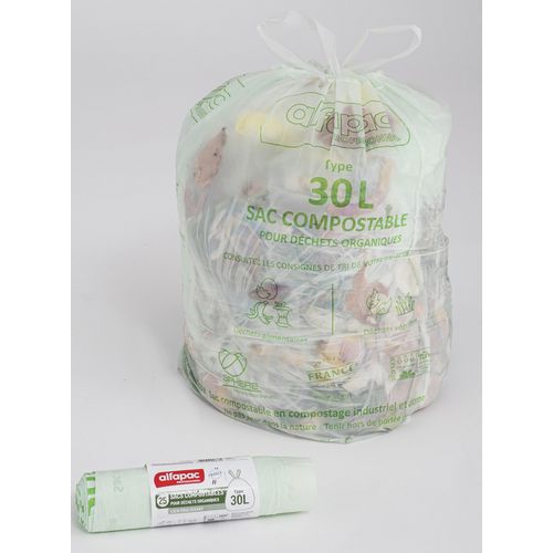 | Produktname | Müllsack mit Zugband für Biomüll, 30 L - Alfapac, Gesamtinhalt: 30 L, Stärke: 18 µm, Höhe: 650 mm |
