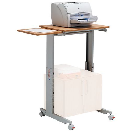 - Vergrößern Sie Ihren mobilen Arbeitsplatz mit einem kleinen Schrank, der sich zwischen den beiden Ständern anbringen lässt.