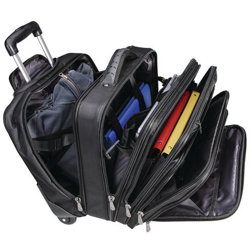 | Produktname | Multifunktionaler Rollkoffer mit 2 Rollen und 5 Fächern, Farbe: Schwarz, Gesamtbreite: 43 cm |