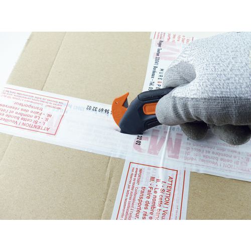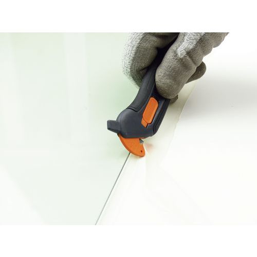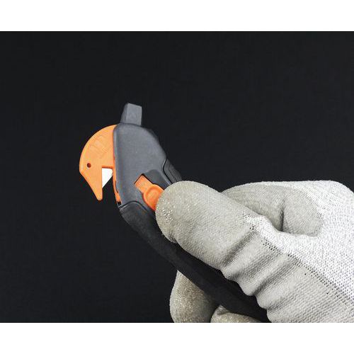 Perno antitaglio per strappare adesivi e imballaggi. Coltello a becco d'anatra con punta morbida per evitare punture.