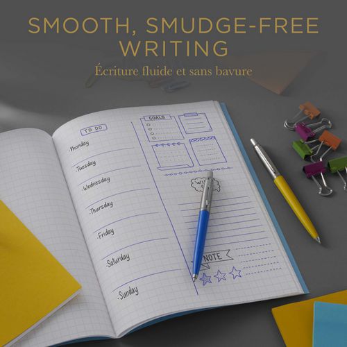 Erleben Sie gleichmäßige und flüssige Schreibleistung dank der Tinte und des Farbgels von Parker Das Discovery-Nachfüllset für Parker Jotter London zeigt den ikonischen Union-Jack-Motivdruck und orientiert sich am britischen Erbe sowie an den Wahrzeichen Londons Enthält drei Quinkflow-Nachfüllungen für Kugelschreiber mit mittlerer Spitze (2 blaue Tinten, 1 schwarze Tinte) und drei Quink Farbgel-Nachfüllungen mit mittlerer Spitze (2 schwarze Tinten, 1 blaue Tinte) Jede Parker Nachfüllung ist für einen zuverlässigen Tintenfluss mit schnelltrocknender Tinte entwickelt, reduziert Verschmierungen und sorgt für ein sauberes Schriftbild