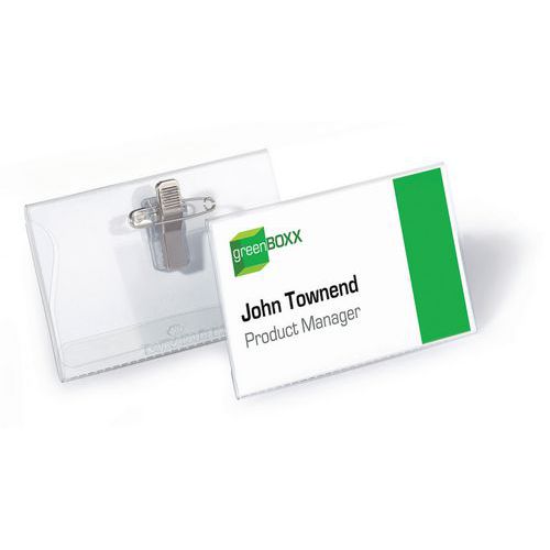 | Produktname | Namensschild mit Kombiklemme - Durable, Farbe: Transparent, Länge: 90 mm, Höhe: 54 mm, Stückzahl: 50 |