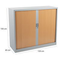 Praktischer, kompakter Schrank. Fachboden verstellbar und auch für Hängemappen geeignet. Kratzfeste Epoxidbeschichtung. Verriegelung des Rollladens aus Kunststoff mit einem Zylinderschloss. Consigli di sicurezza: - installare il mobile su una superficie piana - fissarlo su una parete o parete divisoria con un fissaggio adeguato - assicurarsi di non superare il carico massimo consigliato e la sua buona distribuzione