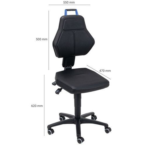 | Produktname | Niedriger Werkstattstuhl auf Rollen - Manutan Expert, Mit Armlehnen: nein, Typ Fuss: Rollen |