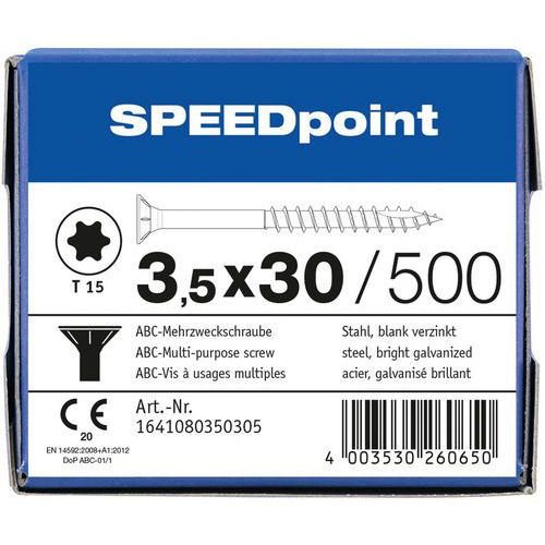 Packung mit Senkkopf-Mehrzweckschrauben TX Ø von 3,5 bis 5 mm – SpeedPoint